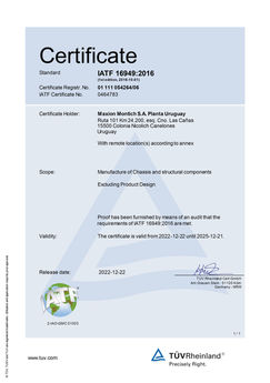 A lo largo de la historia Maxion Montich S.A ha obtenido una serie de certificaciones que constatan la Calidad en sus productos y servicios.